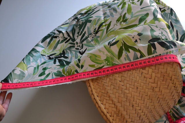 Lo primero que hice fue tomar las medidas de la tela, enrolle la tela alrededor del capazo y vi que el ancho era lo suficiente para hacer mi forro, utilice el ancho entero de la tela. Luego medí la altura y deje unos 22 cm más, total 50cm de tela del ancho total y corte.